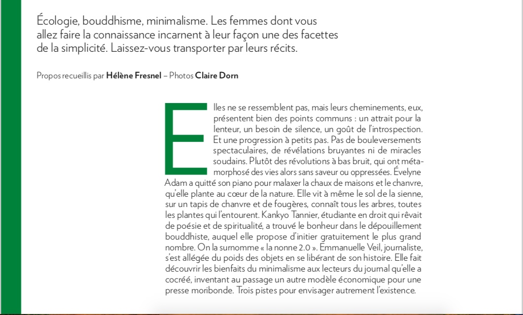 Il y a quelques semaines, j’ai participé à une interview pour Psychologie Magazine sur le thème de la simplicité. Comme vous le savez, décroissance, sobriété, connaissance de nos manques sont des thèmes qui me tiennent vraiment à cœur. Thèmes à manier avec précaution pour ne pas tomber dans la » dictature de la décroissance » mais laisser la place à la prise de conscience ( rapide ) et collective. Un vœu pieux ?